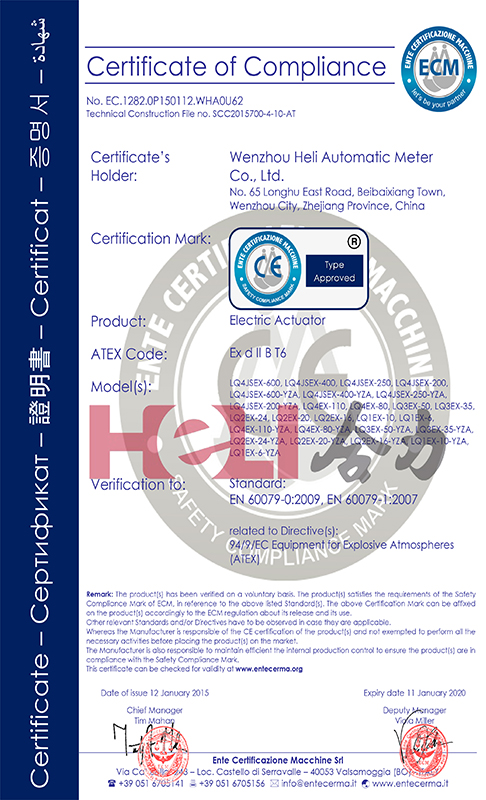 熱烈祝賀合力LQ系列防爆執行機構取得國家防爆證書2012年5月4日,我公司向河南省國家防爆電氣產品質量監督檢驗中心提交了我公司自主研發的LQ型防爆系列產品的相關技術資料。經過檢驗中心的嚴格檢驗,專家組一致認為我公司產品技術先進,技術文件與防爆檢測中心的審查確認···