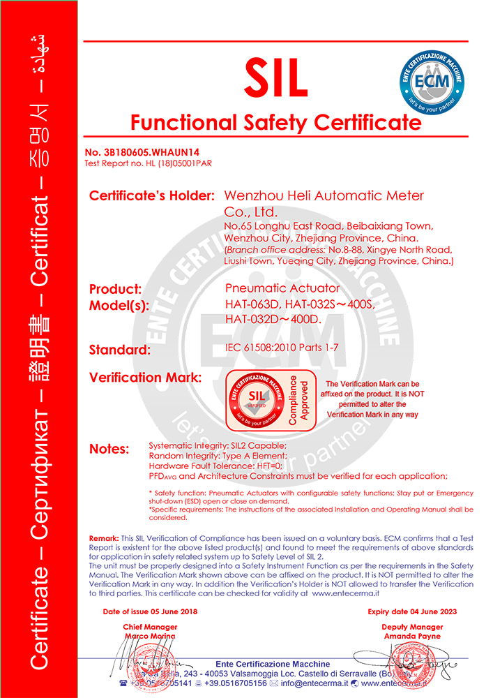 HAT氣動SIL證書