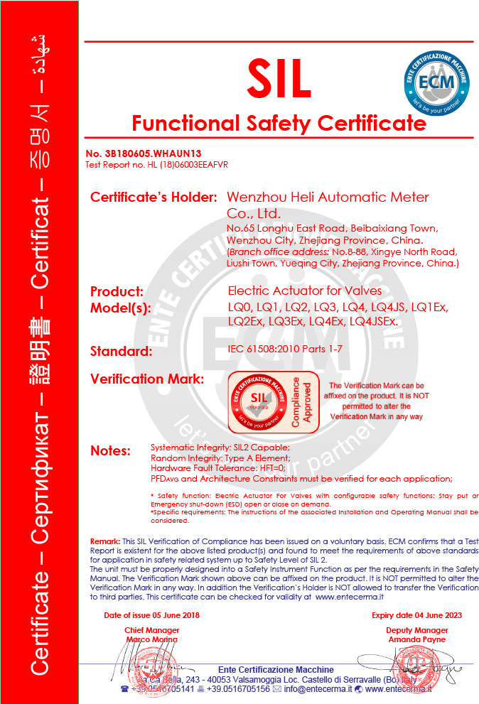 LQ系列SIL證書